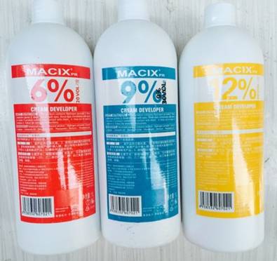 2.作用:10°(3%)双氧奶起染深的作用;20°(6%)双氧奶可染浅1个色度并覆盖白发;30°(9%)双氧奶可染浅2~3个色度;40°(12%)双氧奶起染浅4~5个色度及漂浅褪色的作用。