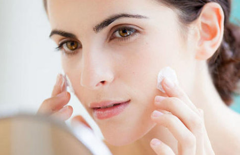 3、基础的面部护理结束后,取适量素颜霜均匀的涂抹于面部,轻轻按摩直至吸收。