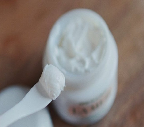 1、先用专用的小勺舀出适量的面霜置于掌心,左右手合十将面霜均匀的分开于两掌心中。