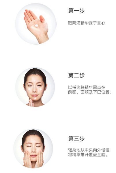 使用方法则是涂抹于整个脸部后在重点部位涂抹2-3次,用手指轻轻推开均匀涂抹全脸,在眼、鼻翼等重要部位可用额外的分量重复涂抹,轻轻拍打效果更佳。
