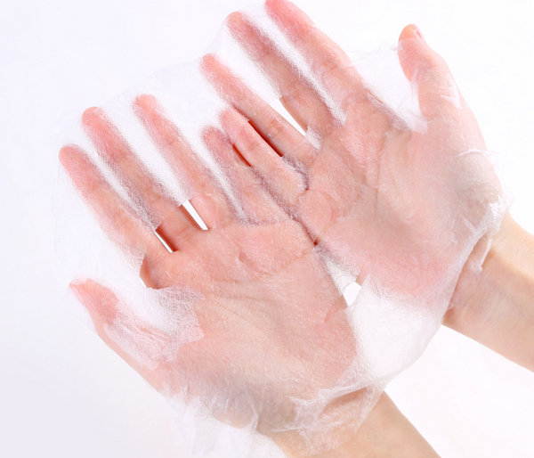 将面膜纸置于容器中,用适合自己肤质的化妆水注满容器,待面膜纸吸收水分、膨胀开来,几分钟后即变成和脸形一样大小的面膜纸。洁面后将面膜取出,展开面膜,轻轻地敷在面部。静待10分钟面膜干透后,从下而上剥离,然后再涂少许润肤霜,即可让皮肤水嫩净白。