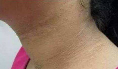 2、脖子后面发, 明明没有被晒黑,却发现脖子后面变黑并出现皮疹,有可能是患上了糖尿病。除此之外,还有可能是胃癌、肝癌的征兆。
