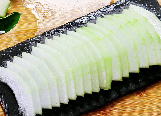 【用法】明代著名药学家李时珍说,用冬瓜瓤擦拭面部和身体,可以“去黑渍,令人悦泽白皙”。吃冬瓜的时候取出冬瓜瓤,用新鲜的冬瓜瓤直接涂抹面部,并按揉几分钟,可以淡化面部色斑。中年女性可以多用些冬瓜瓤,连脖颈和手臂一块涂抹,预防这些位置产生老年斑。