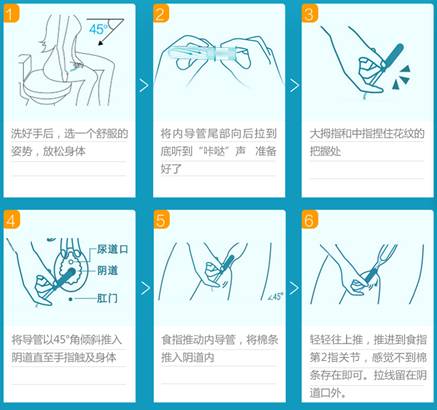 第四步:把棉条的内管置入体内,大概几英寸,不能太深入。手必须够得着外管。