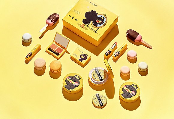看到这你是不是着实大吃了一惊?哈哈哈没有错,鲜香麻辣的周黑鸭和时尚的谜尚推出了一套“精致”与“香辣”并存的联名彩妆。包装整体都是黄色加上一个小黑鸭子的形象,非常活泼可爱。彩妆系列包含气垫,眼影,唇釉唇膏,等。