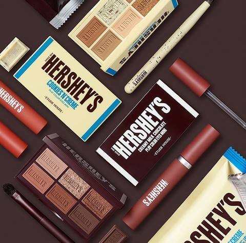 香浓丝滑的巧克力遇上受广大少女喜爱的伊蒂之屋碰撞出来的必定是甜蜜且美丽的火花。好时与伊蒂之屋这款联名包装就是一个尚未开启的巧克力包装。打开包装你就会收获像巧克力一样丝滑的唇釉,有着巧克力形状的眼影盘。真是惊喜又诚意满满的联名。