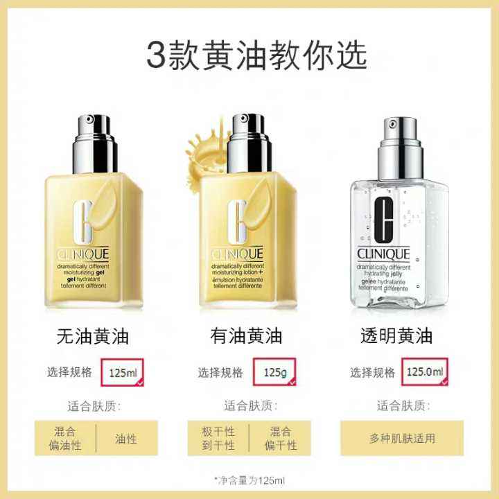 有油的黄油是鹅黄色,质地比较厚重,但是涂抹起来比较流畅易吸收,没有气味,也是秋冬季节的首选,无油黄油是乳黄色,质地更轻薄,适合混油和油皮使用。更加适合夏天的皮肤需求。而透明黄油是适合所有的肤质,质地也是最清爽的。