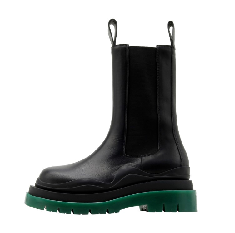 值得的,这双「雨靴」又再次成为2025秋冬的爆款,THE TIRE绿底靴本身就是超抢眼的造型亮点,即使上下身同色系黑,仍可穿出独特时髦味,同时可拉长腿部比例。2025秋冬登场的全新话题神靴款,将Bottega Veneta靴款魅力推向新高峰!IG上已可看到许多时尚潮人将THE TIRE皮靴踩上脚,使用植鞣小牛皮搭配三重橡胶靴底,制作过程繁复的THETIRE,抢眼圆形靴头、充满辨识度的波浪线条以及彩色鞋底,为日常穿搭更添造型亮点。THE TIRE有高筒、低筒两种版本。高筒款已成为BottegaVeneta靴的新经典;可搭配各种袜子创造多元造型乐趣的低筒款,不但是运动鞋的绝佳替代方案,更适合搭配今年超夯的宽裤,穿出质朴又时髦的风格。