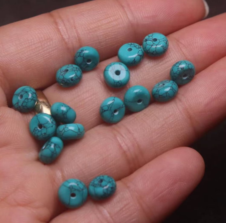 美国绿松石呈纯蓝色,国产绿松石颜色色域比较广,以蓝绿色调居多,并且偏绿色的多。