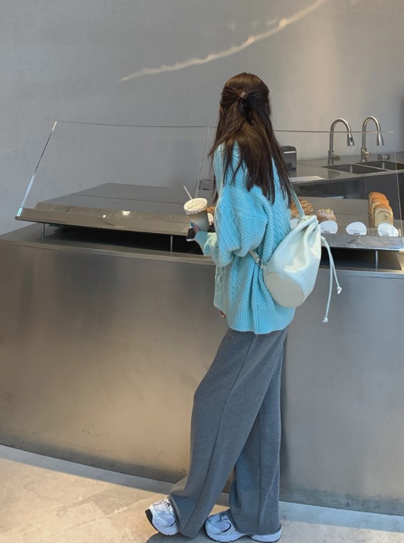 蓝色上衣搭配同色系裙子以套装的形式存在,十分抢镜,统一的色系更显清新。如果会担心同色系的色彩过于单调,可以在配饰上做文章。