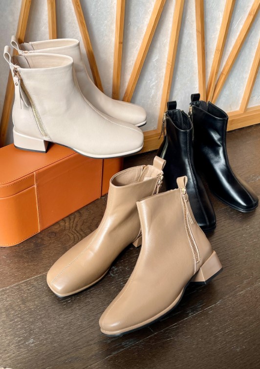 2、踝骨较粗但小腿纤细的话,短筒、圆头的靴子是个不错的选择,既可遮掩缺点,亦可突出修长的小腿。