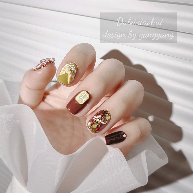 这类美甲主要多了一些时尚流行的元素,将奢侈品的元素放在美甲上,不仅具有时尚感,还显气质。适合知性的女性气质!