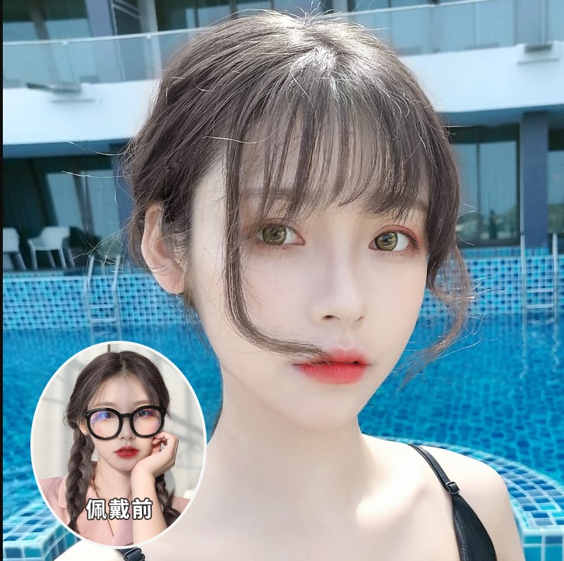 首推这款刘海是大家在熟悉不过的空气刘海,半透明的空气刘海清新甜美又能为妹子起到减龄效果,搭配短发是真的很好看。