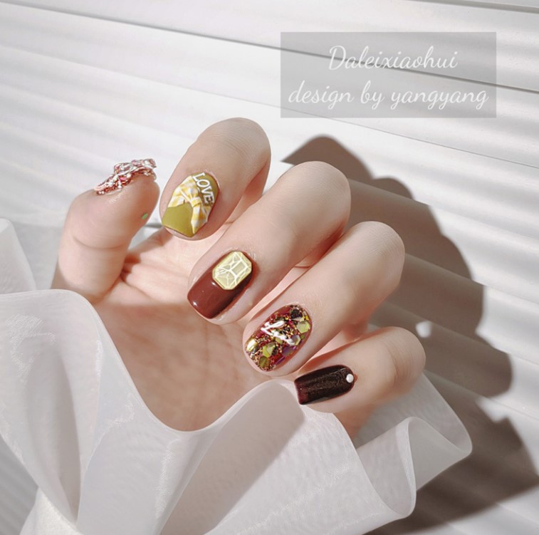 还在涂纯色的美甲么?这未免真的有些out啦~现在很流行这种拼色的美甲,经典又简约。拼色简约却不失美妙,可以同色系小小撞色,也可以2-3个不同颜色拼色,颜色深浅跳跃很灵动,喜欢的妹纸不妨试试看。