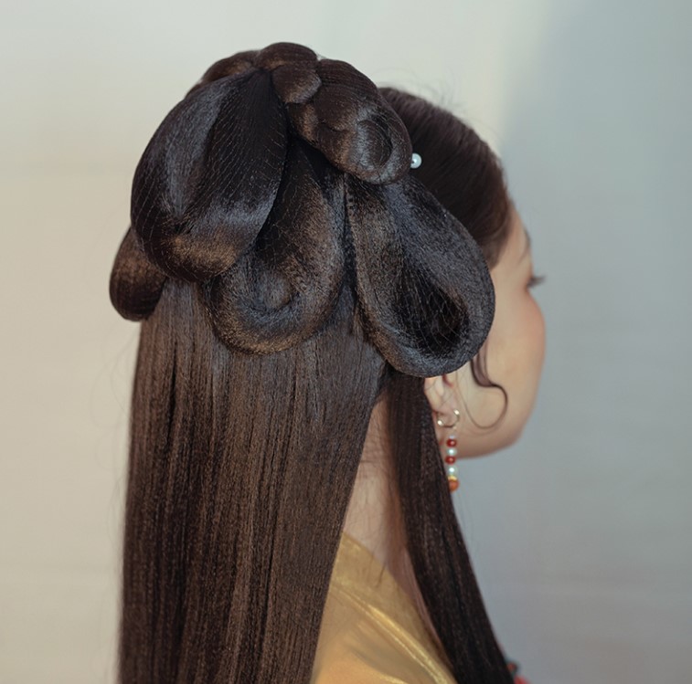 发型与冠戴能增加女子仪容的俊美 ,又能体现出女子的年龄与身份特点。段成式《髻鬟品》就记载了不下百余种,其髻名虽多,但基本上是按髻的形态与装饰而命名,如髻似螺,曰螺髻,如髻饰以凤,曰凤髻等。古代女子发型变化,基本上是按梳、绾、鬟、结、盘、叠、鬓等变化而成,再饰以各种簪、钗、步摇、珠花等首饰,因此研究女子发型主要是探讨其梳编形式与规律。据古代作品及记载,概括分为结鬟式、拧旋式、盘叠式、结椎式、反绾式、双挂式等主要六类。
