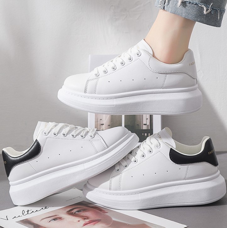 麦昆鞋作为一个鞋牌,自然拥有不同的配色,其中白鞋黑尾成为了经典的配色,小白鞋的底层加厚了底部,穿上就会带来一定的增高效果,由于增高的比例非常合适,在一定程度上会让人感觉自己的腿部被拉长,修长纤细的风格让人钟爱有加;脚腕口部的设计比较出众,不仅十分小巧精致,也会让腿看起来细长有致。