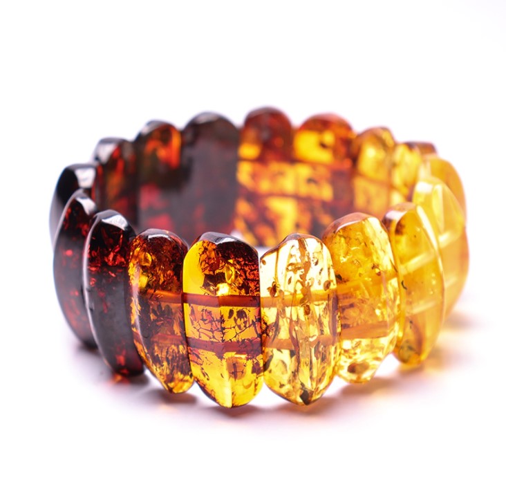树脂滴落,掩埋在地下千万年,在压力和热力的作用下石化形成,有的内部包有蜜蜂等小昆虫,奇丽异常。