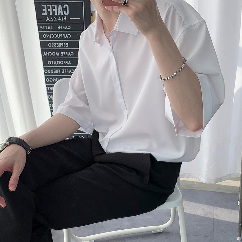 纯棉、聚酯纤维等常见且带有一定硬度的材质都很值得选。有条件的姐妹还可以尝试自带光泽感的真丝、缎面材质。衬衫版型要选宽松的,不要修身+硬朗版型,老气又容易显成熟,谁穿谁显老。领口过于立挺、贴近面部的版型也容易显老,不能选。
