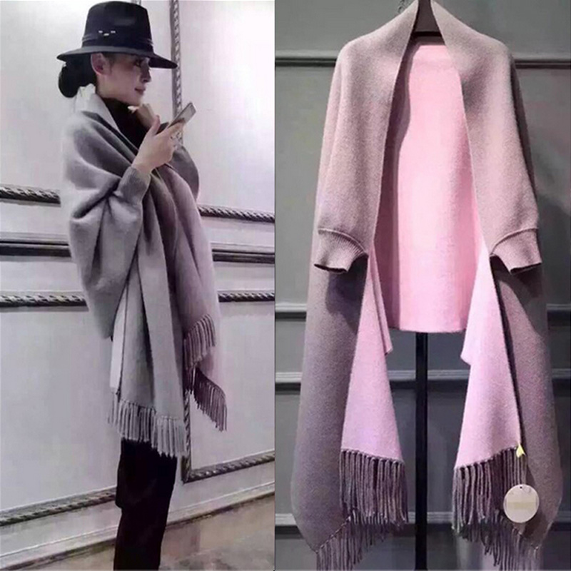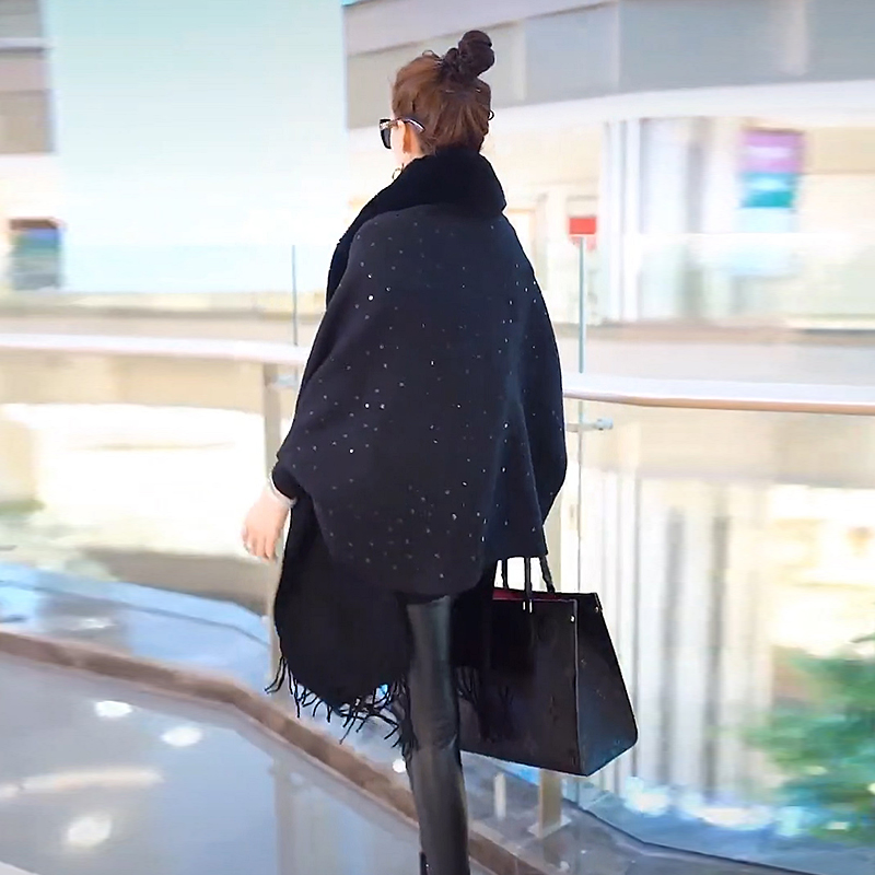 带袖口披肩顾名思义就是带有袖子的披肩,一般我们看到的披肩都是没有带袖子的,直接披上就能够出门了。如果是黑色的带袖口披肩,不妨就直接来一身黑色时尚吧,里面穿上一个包臀的短裙,然后再搭配黑色的丝袜,看上去既优雅又时尚,很多的欧美名人都喜欢这样穿。个人认为带袖口披肩还是和裙子穿搭比较合适,具体颜色还是看个人喜欢吧。