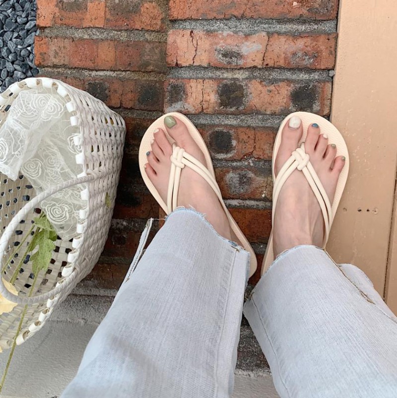 在穿人字拖的时候,你往往会不自觉地改变你的步态,频率变快、步子变小,这样的走路方式很容易引起身体其他部位的疼痛。人字拖穿起来非常不跟脚,所以为了避免鞋子随脚飞出去的尴尬,我们常常会刻意缩短步伐,并把脚腕向内侧转来“巴”住鞋子,而且身体重心前倾,膝盖会自然弯曲,腰部的脊柱也会跟着弯曲,时间久了,不仅会让你的步伐变成幼稚的“内八字”,膝盖和脊椎都会疼痛,甚至造成坐骨神经痛等问题。