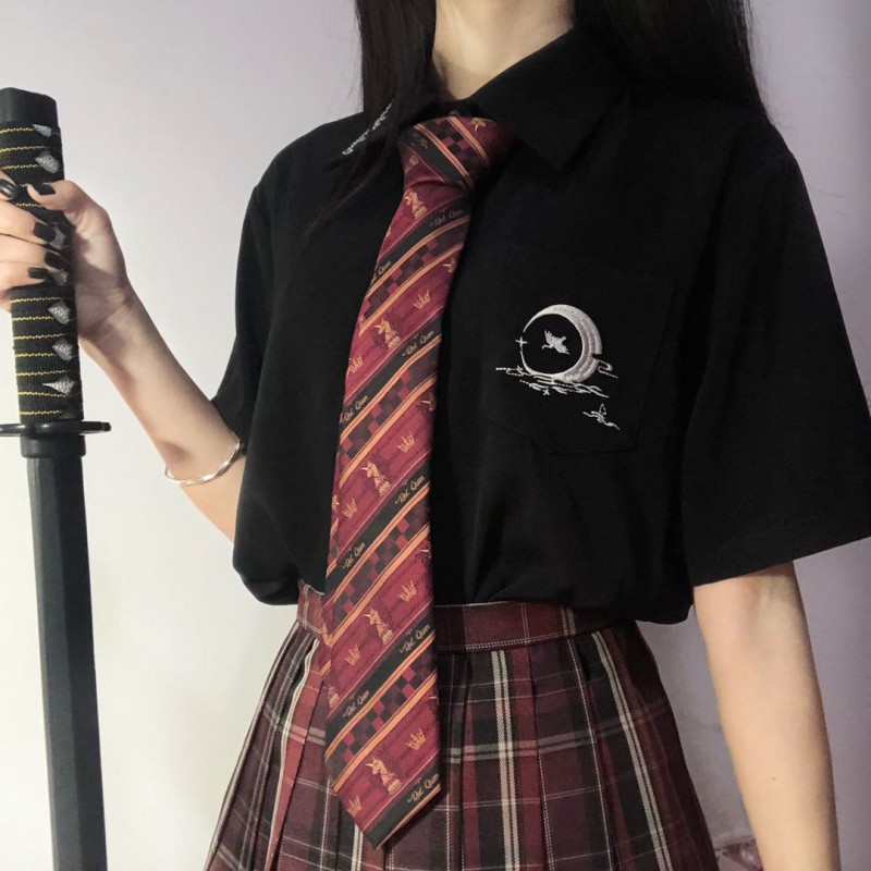嫌黑色太沉闷?各位嗒友们,来点新奇时髦的LOOK吧!印花牛仔短裤搭配黑色衬衫还不够,把衬衫打个结这样的90年代复古穿法今年又火了,再正式的衬衫也能穿出不良少女的风格。