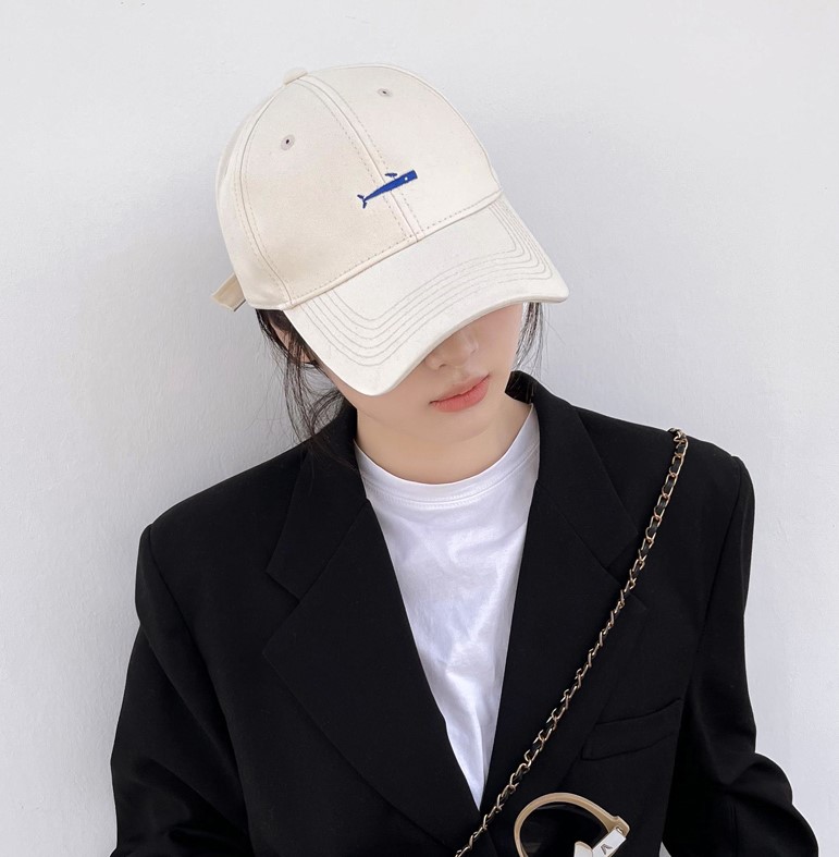 小编给大家推荐的第一种棒球帽的戴法,是针对没有刘海的女生推荐的,没有的刘海的女生戴棒球帽时候,可以将我们的帽子盖住我们一半的额头,然后其他的地方就正常戴。