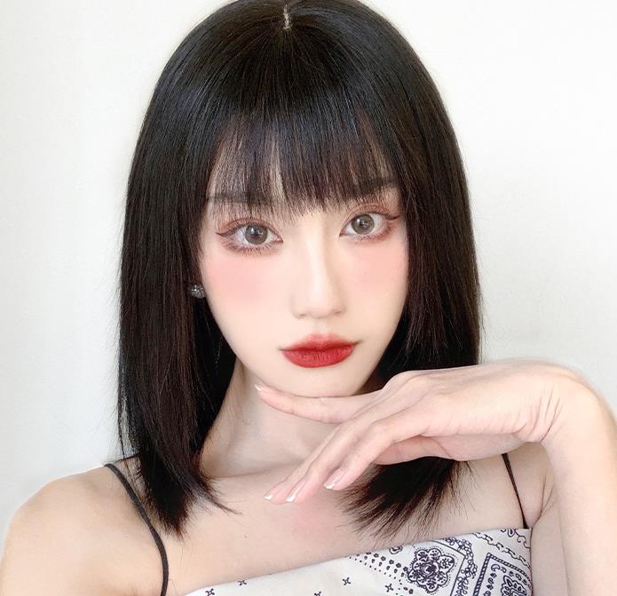 这款齐刘海短发也有着很好的修颜效果,有点凌乱的齐刘海与蓬松的短发搭配,带来了丝丝动感与活力,显得没有那么呆板,给人一种很清新的感觉。