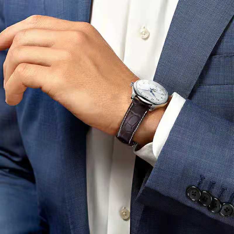 所谓男士有三个代表,运动戴运动的表,休闲戴休闲的表,商务戴商务的表。比如,你在谈公务时,戴一只斯沃琪花花绿绿的表就不合适。打高球或者跑步时,戴一只金劳,就不知道怎么评说好了。一般而言,越郑重的场合,所戴的表最好越素雅,正装表在60年代之前,以金属表带为上,但如今因为运动表款大量运用金属表带,相对而言皮表带更正式。