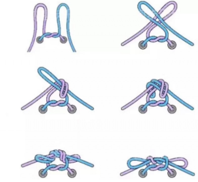 6.鞋带交叉从第五个孔穿出,再交叉从第六个孔穿进,重复手法全部穿好