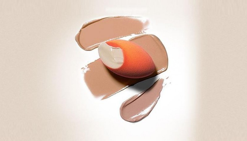 第三步:注意粉底液少量多次,一点点上妆,这样可以减少美妆蛋吸粉。