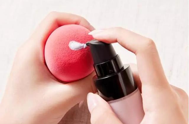 第一步:用喷雾将美妆蛋喷湿或沾水沾湿,按压美妆蛋到变大为止。
