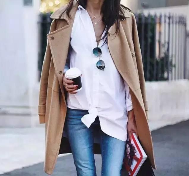 也可以解开两个扣子,尤其是身材比较好的女生更适合这样穿,显得整个人很性感也很自信。