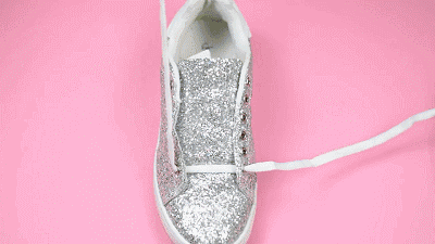 5、保证三条平行线的关键就在于,同一边的鞋带先从同侧穿出,再穿对侧鞋孔。这样一个美美的网格就出现在你的鞋子上啦!