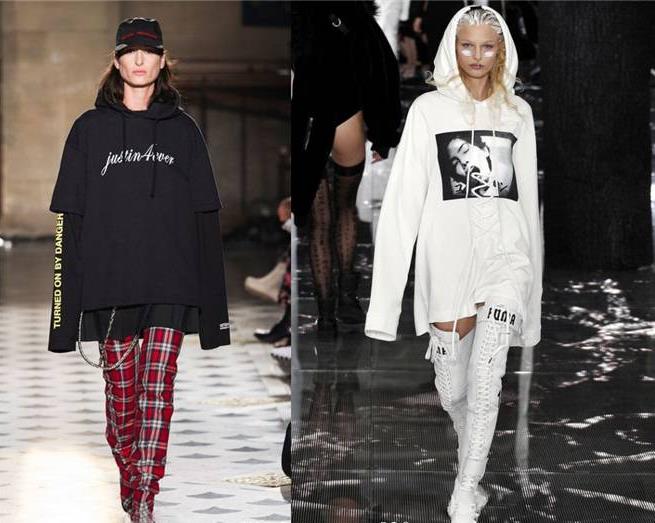 1. 长款卫衣搭配紧身裤 在穿搭方面,我们需要谨记的一点就是,上紧下松或是上松下紧,如果上身穿了比较宽松休闲的服装,下身就可以搭配紧身的裤装,如果上身穿了比较紧身的服装,下身就可以搭配比较宽松的裤装,以此来达到平衡和谐的效果。因此一件宽松的长款卫衣搭配紧身裤是很合适的,可以展示出纤细的长腿,也能中和一下上身宽松的感觉。