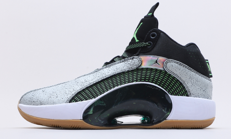 鞋简单上脚穿了一下,前掌气垫澎湃,后掌没啥明显感觉。然后就是轻!真的轻!我平时nike42.5,AJ32和AJ34都买的43,很合脚。这个鞋包裹来得有点有意思,后跟能锁定,前掌外侧的tpu和第一个鞋带孔内侧能很好地包裹住前掌。但是脚中部两侧是空的,网布材料完全没有贴合,有一种前后紧中间无感的意思,很特别。另外大拇指没有防踩的结构,大脚趾指甲顶住网布了,不过实战希望不会把网布顶穿哈哈哈!