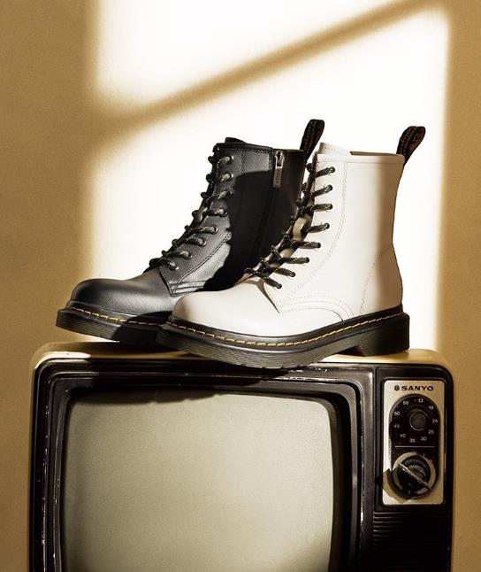 小编先给大家介绍几款马丁靴鞋带的系法,小伙伴们可以比较一下,看看不同的鞋带系法是否能表现出不一样的感觉。马丁靴鞋带的系法有其小窍门,就是要扎紧鞋带,越紧越好,这样才能凸显马丁靴的形状,同时也能展示自己的完美腿型。比较常见的系法有前系蝴蝶结式和双后式。步骤嘛很简单,相信小伙伴们不需要动什么脑子就可以学会,首先,就像平时系鞋带一样,先把鞋带穿好,再根据自己的喜好,前系或者后系。切记一定要扎紧扎紧扎紧,重要的事情说三遍!!小编个人比较偏爱双后系,原因就是小编比较懒,双后系的系法比较不容易掉,不用走着走着鞋带掉了就要在路边系鞋带。