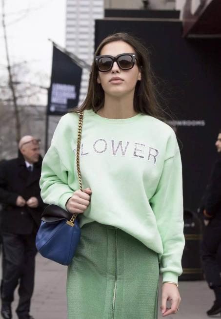 米白色的卫衣,宽松的设计穿起来特别带感,搭配牛仔裤和休闲鞋,把黑皮肤都该藏在衣服下了,一点都不会显女生的黑皮肤哦!