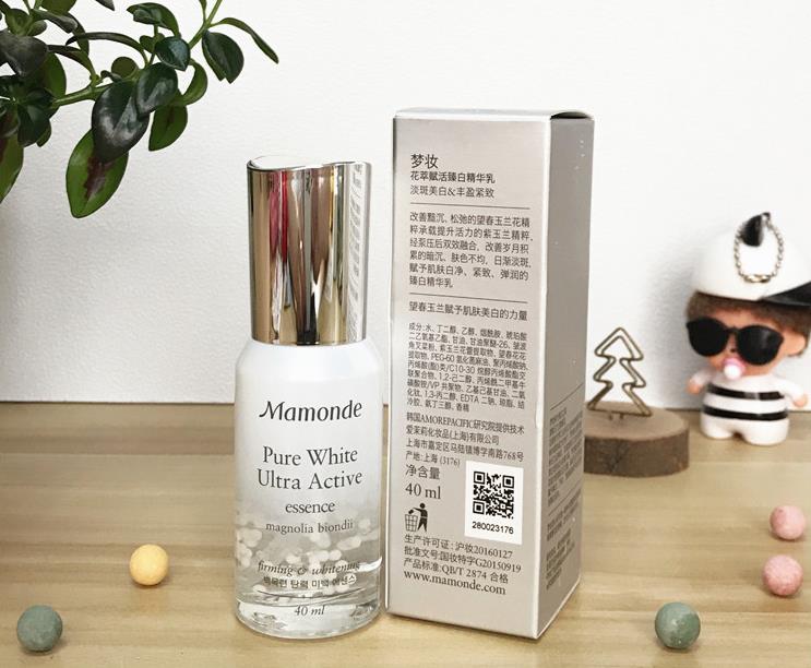 瓶身粉粉的,很激发少女心,玻璃瓶比较有质感。压嘴每次挤出的精华乳量适中,盖子盖严会咔一身,很有日韩的精致感。挤出乳液,闻了一下,淡淡的花香。涂抹开未完全吸收时,滋润度较高,涂抹的比较厚十五分钟后完全吸收,皮肤触感柔滑,干燥肌纹有所改善。并且皮肤看上去有光泽。