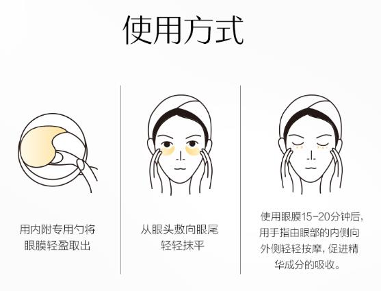 胶原蛋白眼膜功效:补湿滋润,减淡眼部细纹、干纹、皱纹,舒缓眼部肌肤,消除疲劳和眼袋,淡化黑眼圈。