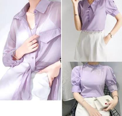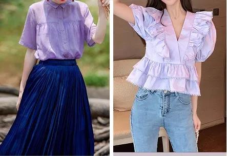 淡紫色是低饱和度的紫色,清新脱俗和完全不挑肤色,搭配白色下装,这个夏季你就是“白雪公主”代言人囖。