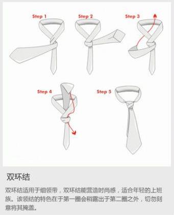 它们的不同在于前者有两个结,即两圈。这种结适合个子矮小的男士, 它适合意大利领和稍细的领带且简单易做。