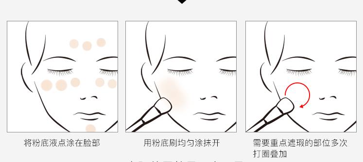 第五步:如果脸部某些地方有明显的瑕疵,建议用刷子轻轻的再刷一层,达到遮瑕的效果。
