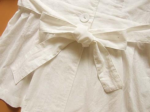 第一步让腰带交叉,后把其中一边的腰带折叠起来,算是半个蝴蝶结形状了。
