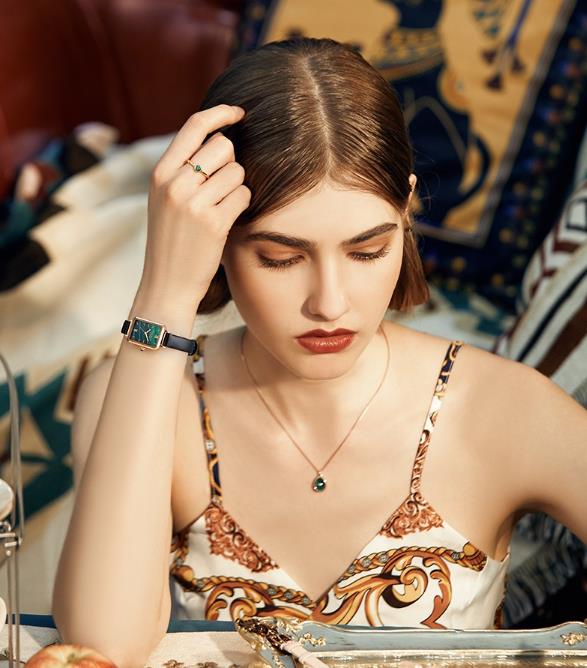 腕带具有一抹复古绿一种久违的放松与宁静,腕美通勤LOOK演绎新生绿意的浪漫型格。渲染幸运绿摩登与复古在手腕间的碰撞。精选意大利优质皮带,柔韧细腻舒适佩戴。表壳材质采用316L不锈钢,表镜材质采用矿物质强化玻璃镜面,表壳直径在24mm。