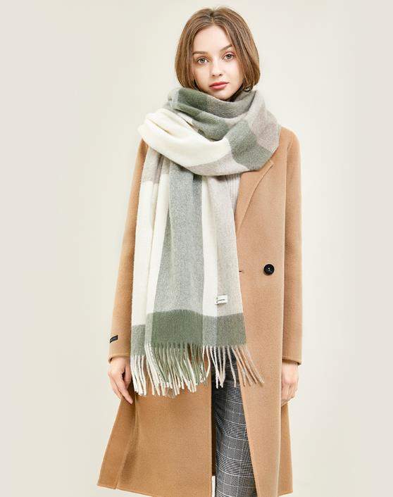 适合的围巾款式: 这种穿插系法最好是用长款的围巾,不要太厚实的款式就好。喜欢复古文艺风的话,可以选择最经典最不挑人的格纹款。喜欢偏基础简约一点的,在素色款的围巾上套用穿插系法也同样是不会显得单调。