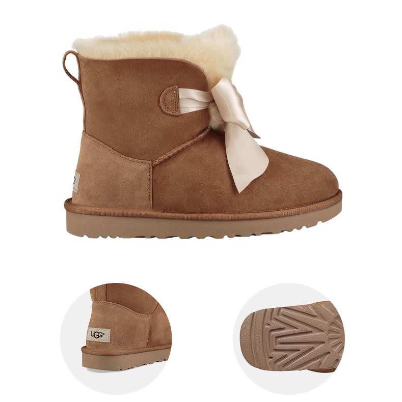 起源于1978年南加州海滩的UGG品牌一直是美国高端时尚生活方式的国际知名品牌。UGG材质上乘,工艺精湛,带来一年四季的鞋履、服饰、配饰、箱包及家居类全线产品。这种羊皮靴从1910年开始在剪羊毛人中变得流行,剪羊毛人从羊的身上取下一小块羊皮,经过修剪后,用来包住他们的脚,他们称这种鞋为丑陋的靴子。一战时,澳大利亚飞行员用两块羊皮包裹成鞋子穿在脚上御寒,后来逐渐在澳洲流行开来。想当年,澳洲空军首先发现了雪地靴的奇妙功能,它内里是羊毛,外边是鞣制过的无比轻软的羊皮,所以,雪地靴就被澳洲空军指定制作专用的军靴,一度地它被称为FUGG。