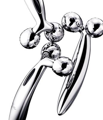 第三步,若苹果肌部位肌肉僵硬,可用双球沿颧骨轮廓四周扭动按摩,待苹果肌附近肌肉松弛后再按这一步骤做一次,可有效提升、饱满苹果肌。待右侧的三步骤完成后,在左侧以同样方法按摩。