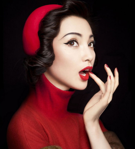 5、 嘴唇:先使用唇线笔画出嘴唇外缘轮廓来调整嘴唇形状,再使用唇彩或口红来进一步修饰嘴唇颜色和亮度。