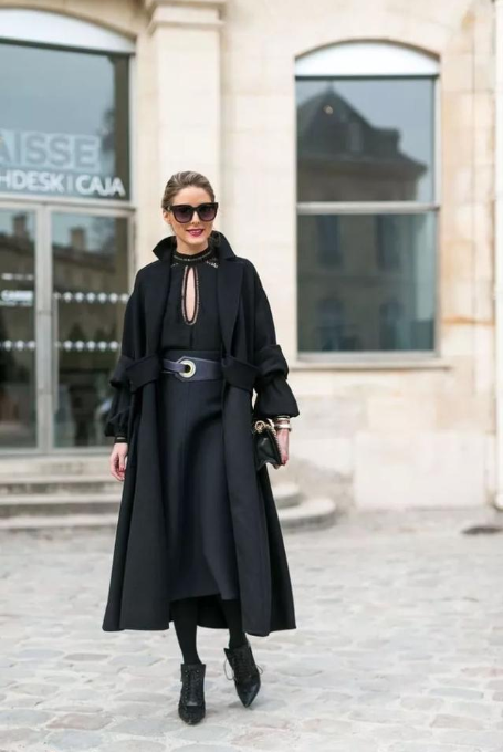 1. 搭配同色系的打底衣。选择同样是黑色的打底衣来搭配这样的外套是永远不会过时的穿搭方法,而且这样子穿还非常的显瘦。