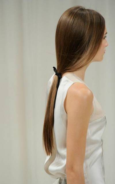 这种一条马尾式的长辫,是最大众,也是最简单的扎法,连小女孩都会这样扎。